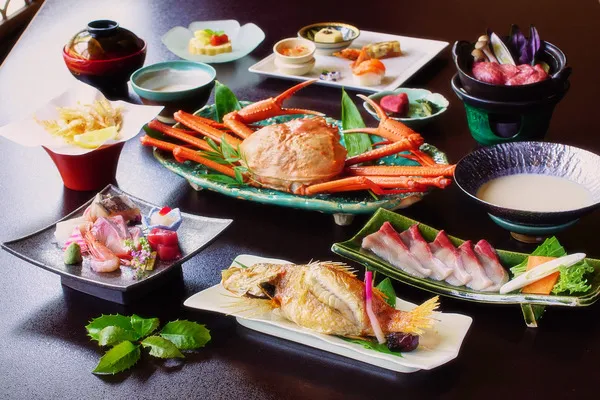 カニ以外にも多くの魚介類が生息するため、四季折々の旬の味覚をいただくことができます。