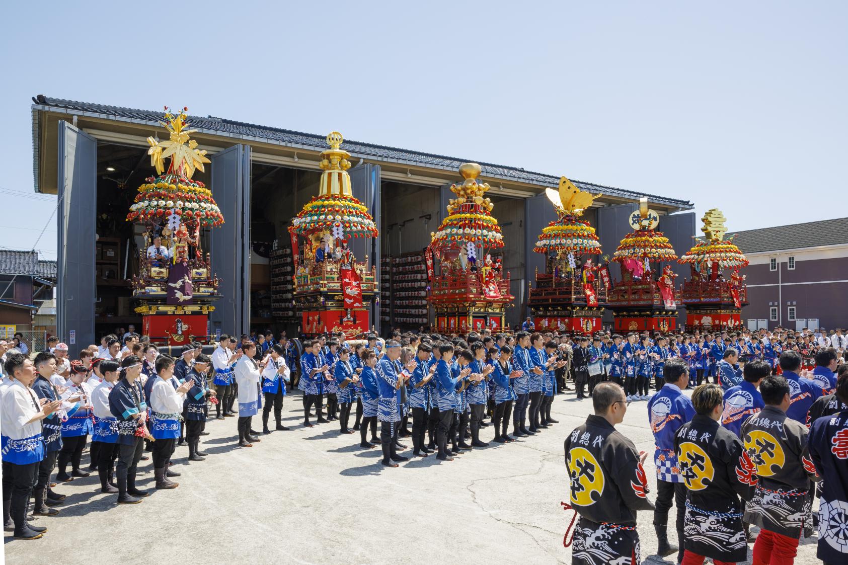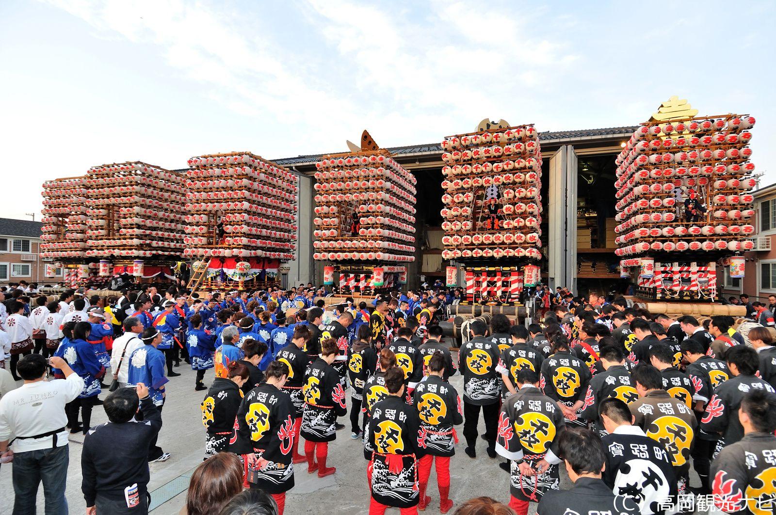 伏木曳山祭では、7台の山車があり、山町(やまちょう)と呼ばれる7つの町がそれぞれ管理運営しています。山町ごとに花山車が祀っている福神が異なったり、それぞれの山車に特徴的な装飾が施されています。装飾だけでなく、管理や補修なども、町の人たちが1年かけて行うそうです。