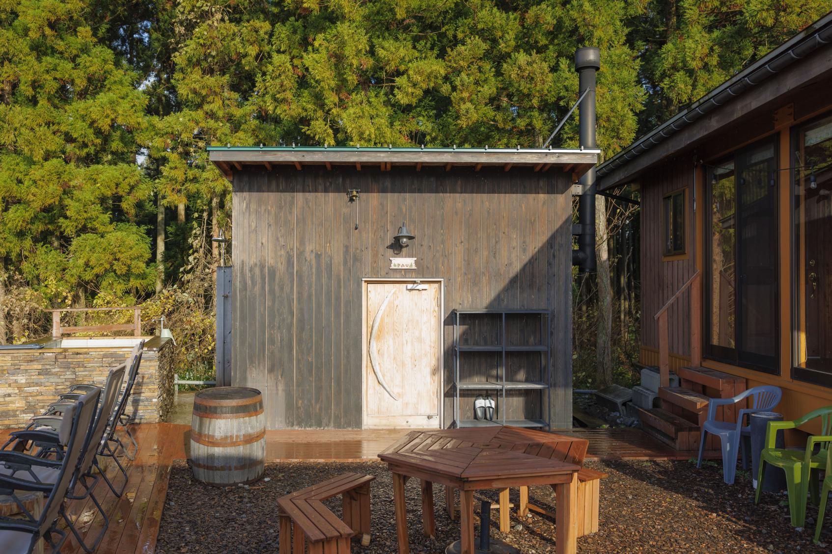 誕生のきっかけはコロナ禍で宿泊客が減少したことだったと一平さんは話します。「どんぐりの客足が止まって新しい仕掛けが必要だと感じていたころに、ブームになりはじめていたアウトドアサウナの存在を知りました。すぐに県外の施設へと視察に行きました」と当時を振り返ります。視察では学びとともに、高台ならではのロケーションや豊かな自然、水を活かせると確信。立山サウナの開設を決心し、2021年冬にプライベートサウナ「TATEYAMA SAUNA」をオープンしました。