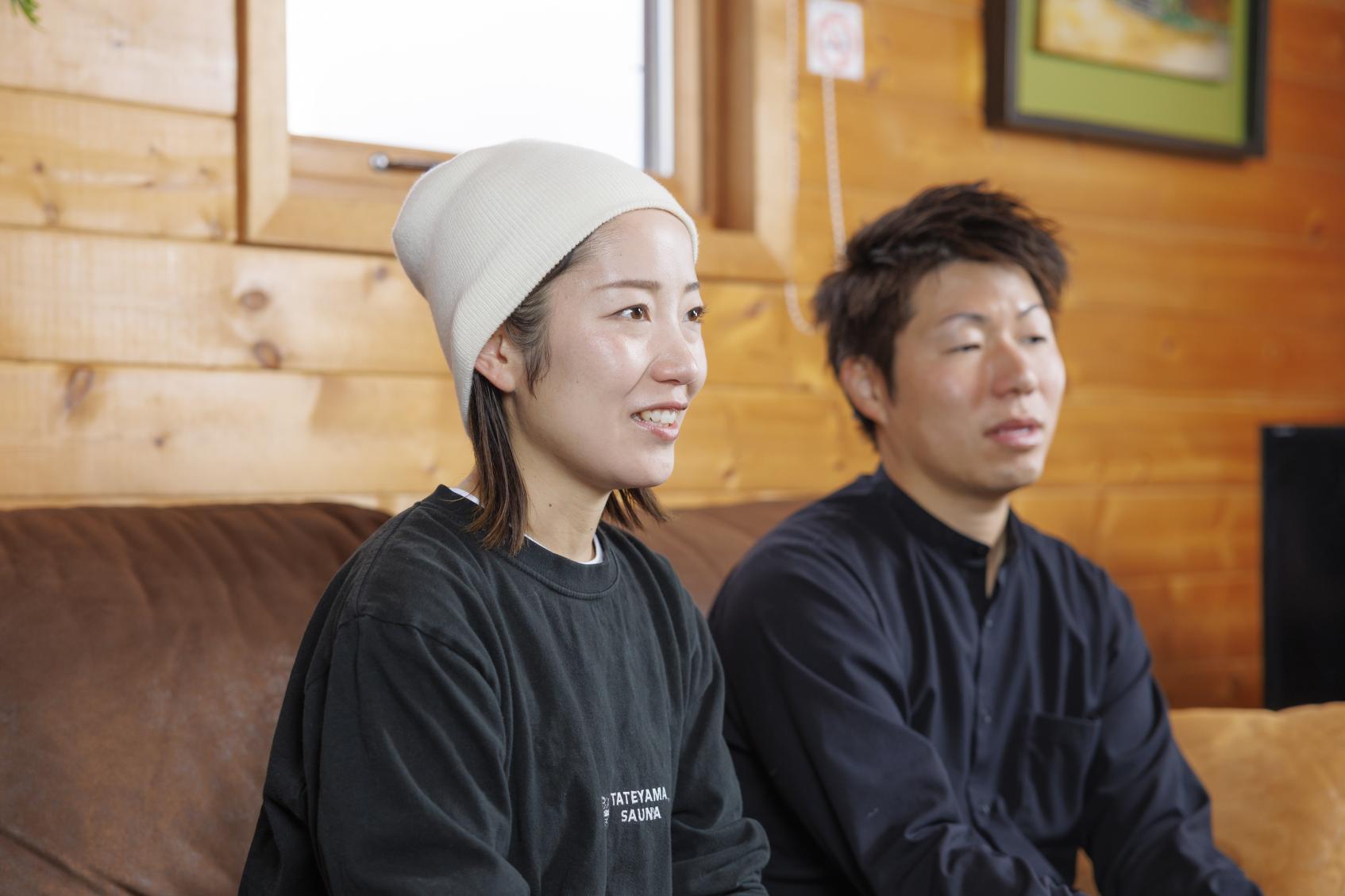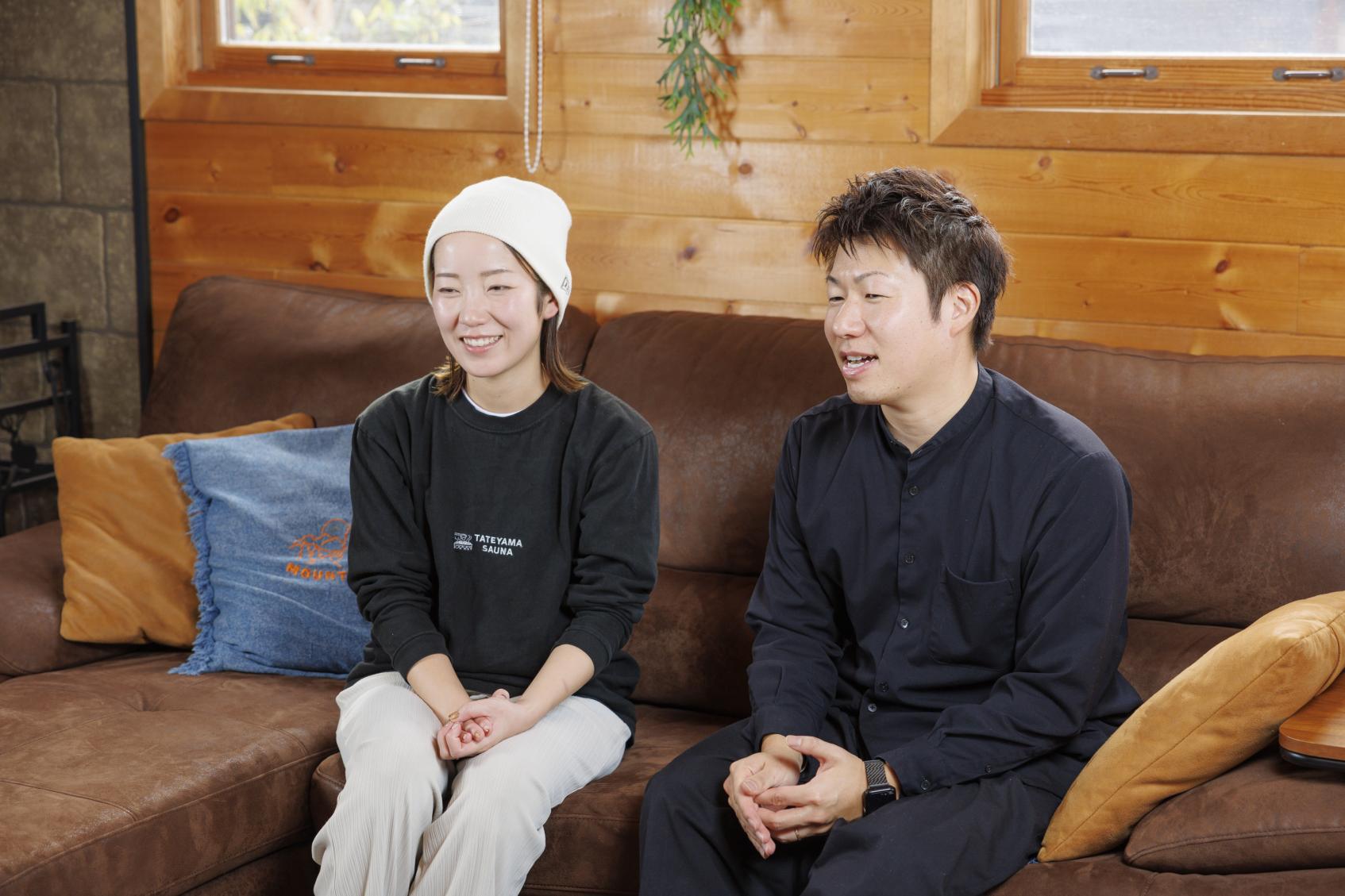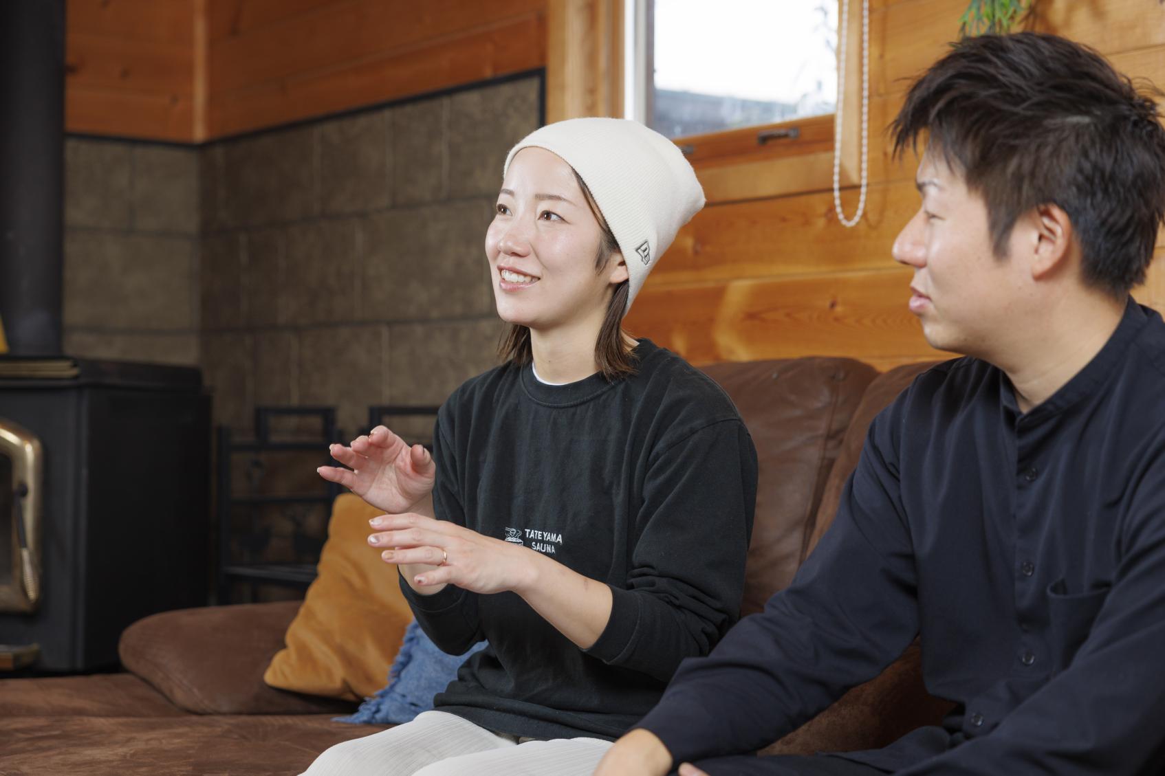 碓井一平(いっぺい)さんと綾(あや)さんのご夫婦は、この地で「TATEYAMA SAUNA」と「貸別荘どんぐり」を運営しています。おもてなしや大切していることを教えてもらいました。