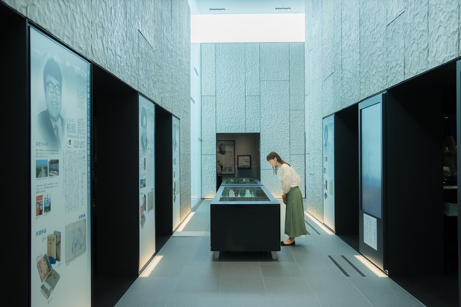 企画展示室のほかに、富山県ゆかりの文学書籍が壁一面に収められた部屋や、県ゆかりの小説家や漫画家らの直筆原稿を展示するコーナー、富山大学所蔵のヘルン文庫(小泉八雲の旧蔵書)の紹介コーナーなどがあります。