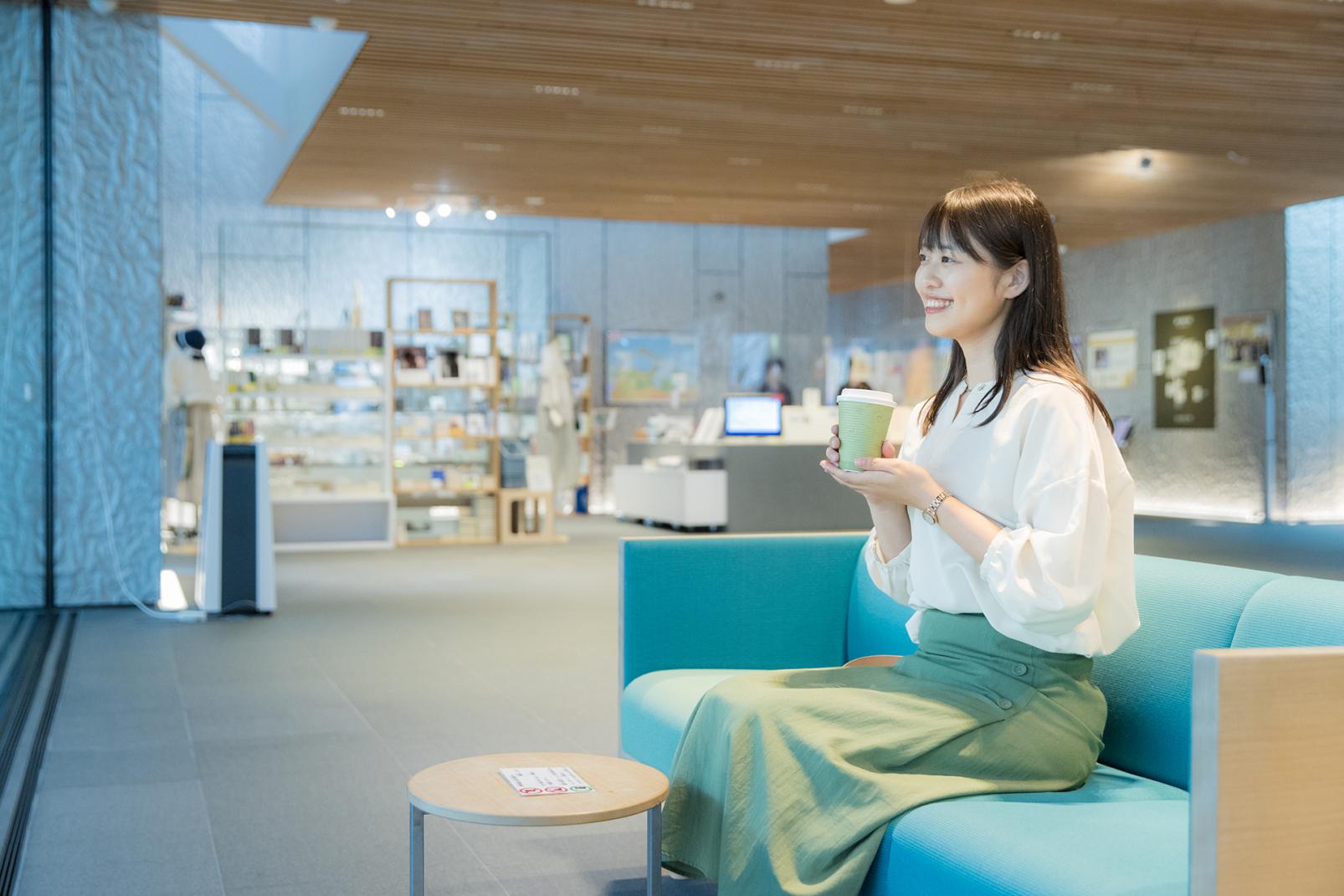 受付で注文したコーヒーを手に、窓辺の椅子に腰掛けて本を読むのもおすすめ。