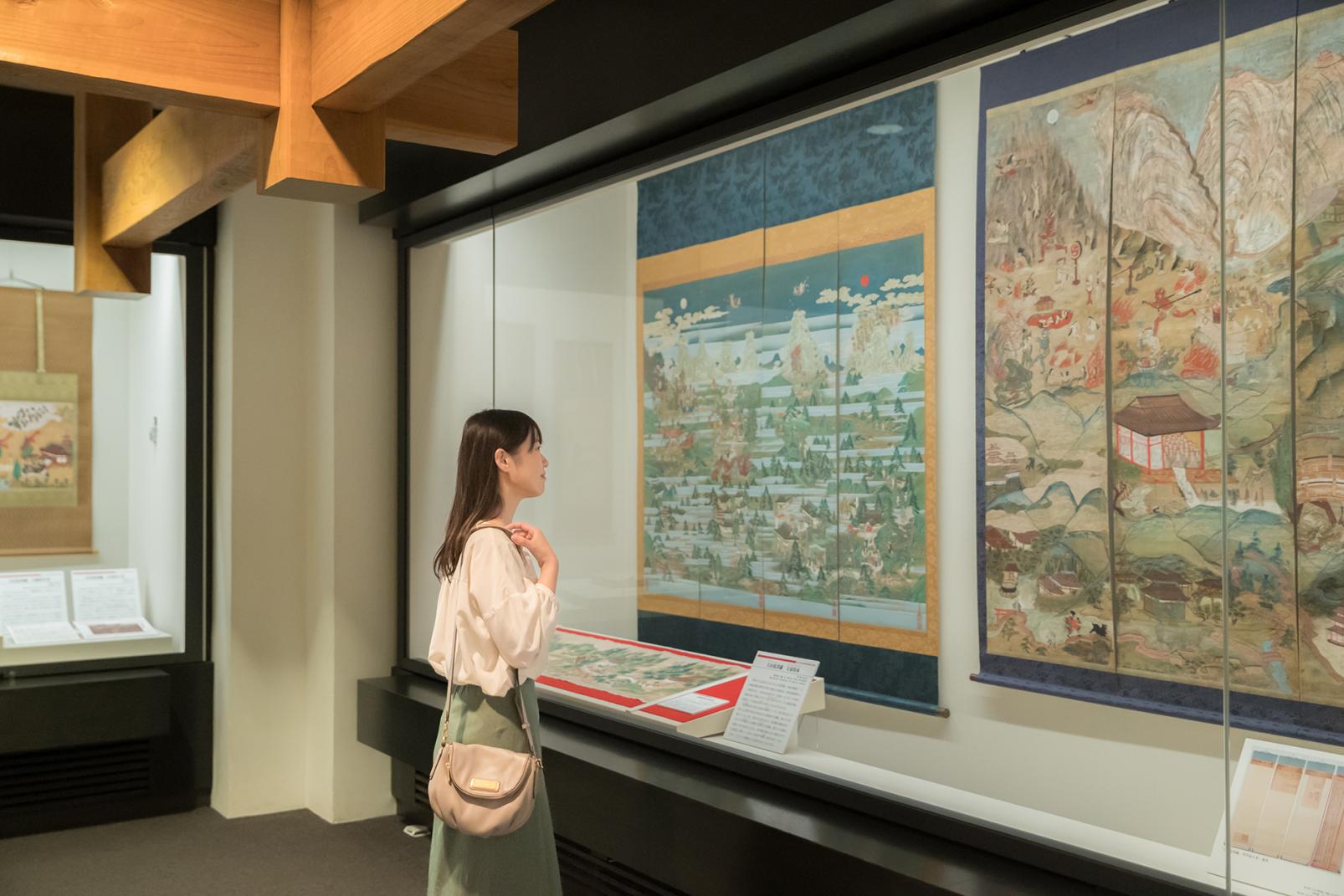 展示室には明治40年に剱岳山頂で発見された国重要文化財の「銅錫杖頭 附 鉄剣(どうしゃくじょうとう つけたり てっけん)」が展示されていて、剱岳が修行の場だったことが考えられます。ほかにもうば尊像や立山曼荼羅(まんだら)など、立山信仰を語る上で欠かせない資料を紹介しています。