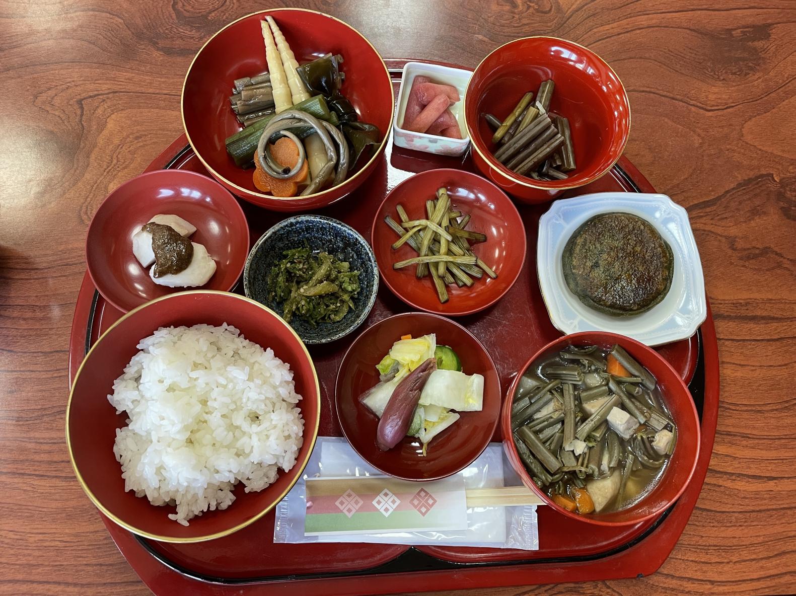 富山県では一般的な『とろろ昆布おにぎり』をはじめ、地元山田地域のフキやカブを使った郷土料理などをいただきます。