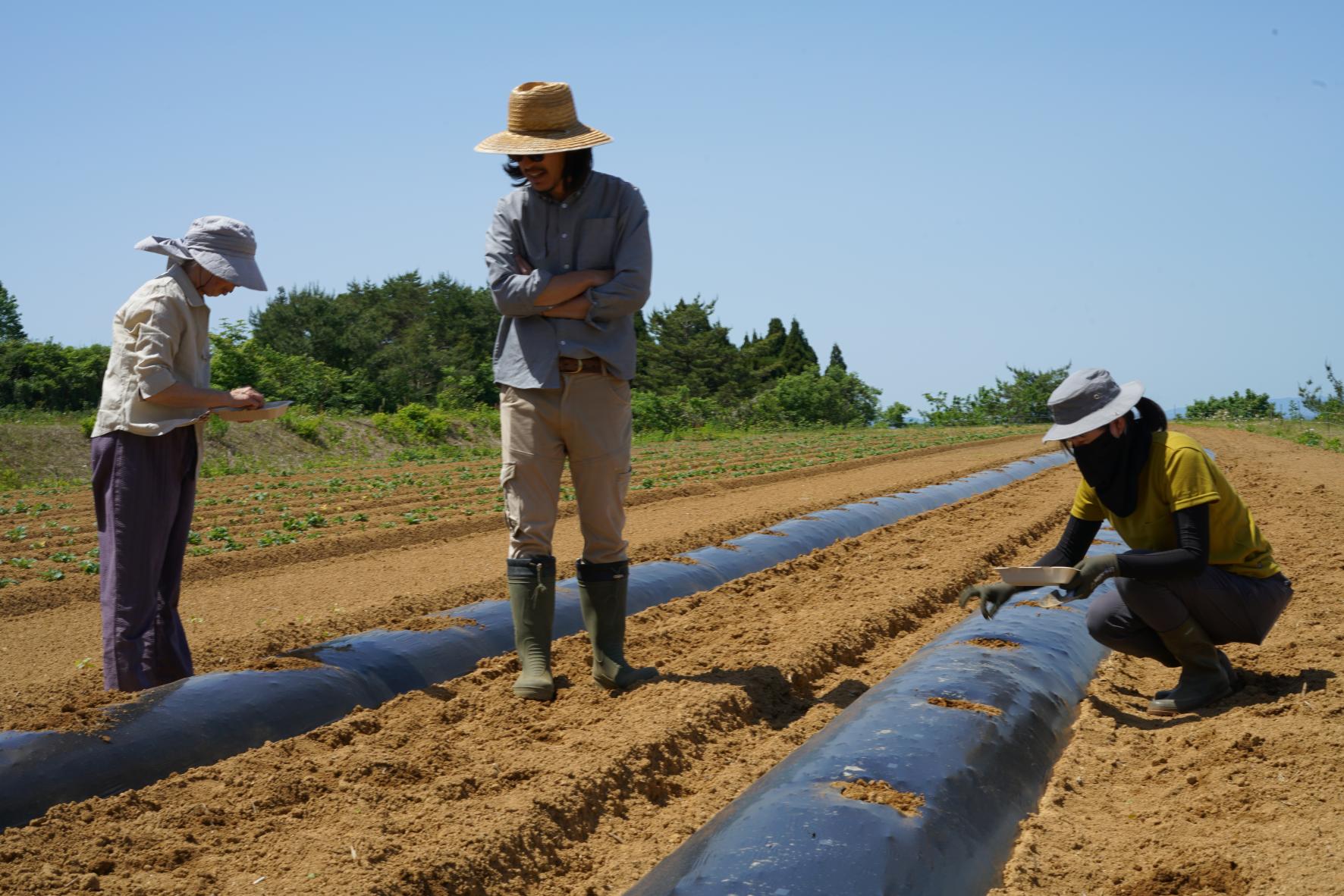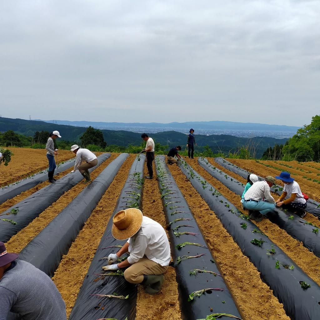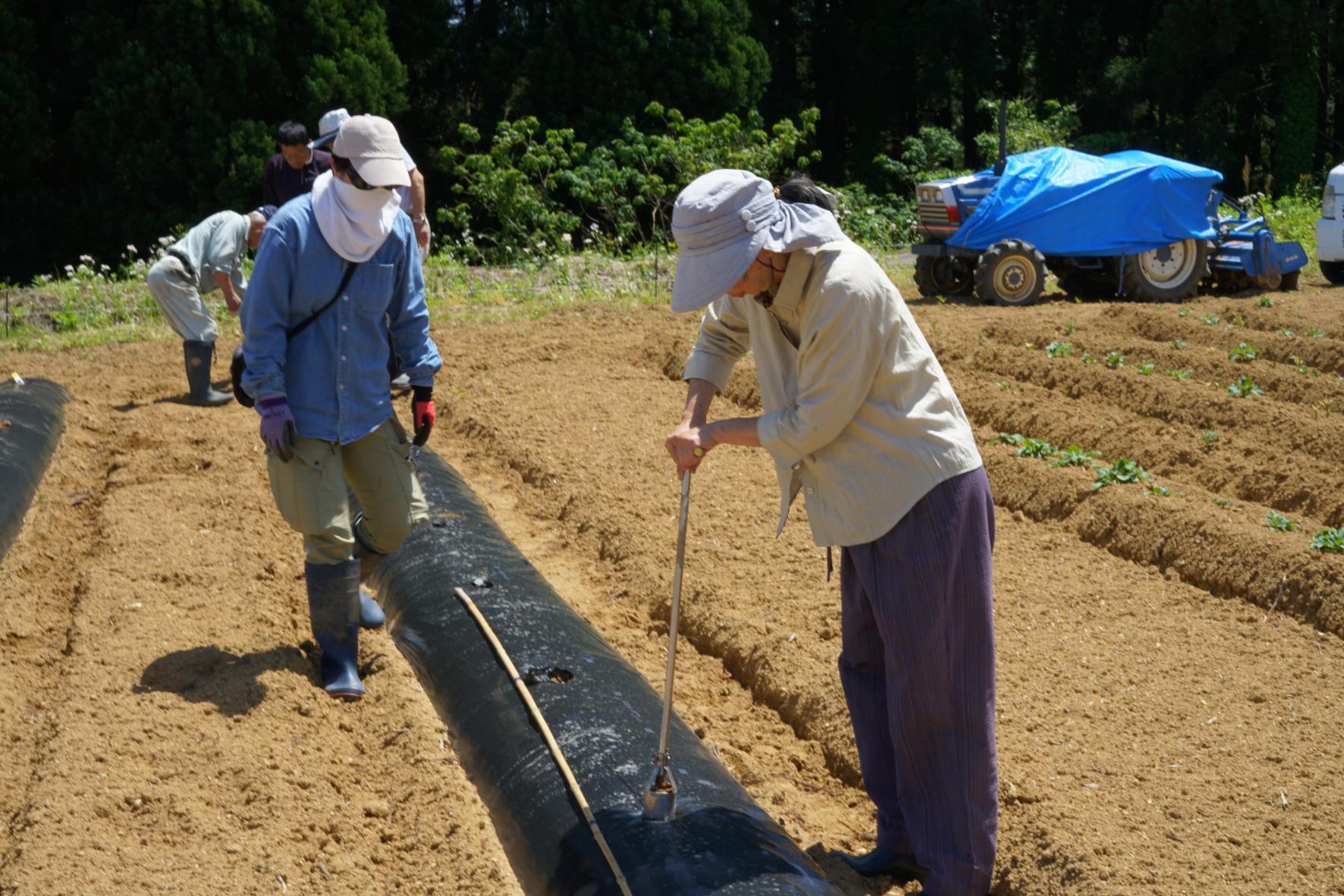 畝に穴をあけ、苗を一本ずつ植えていくという地道な作業ですが、達成感を感じられる作業です。