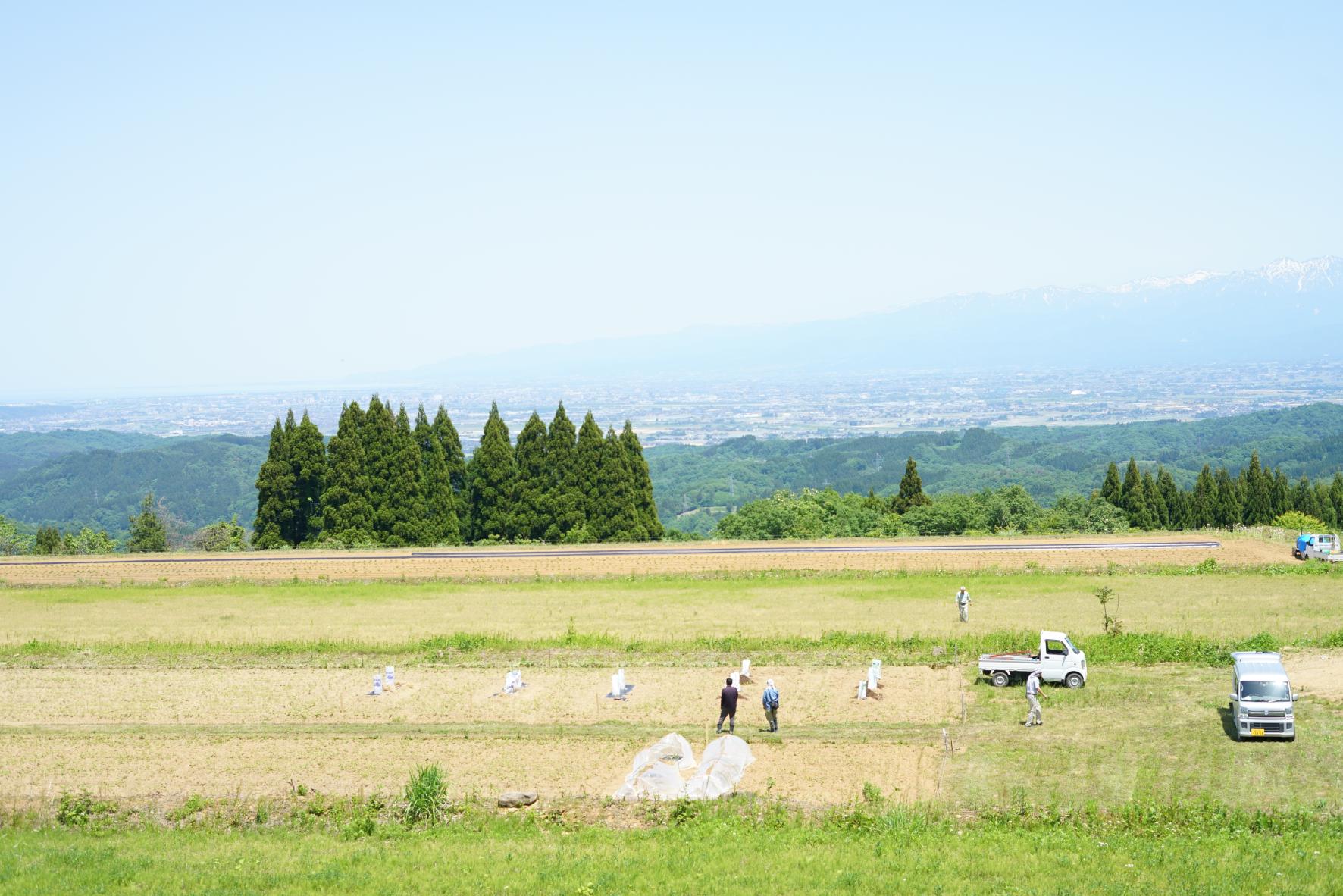 最後の体験は『てっぺん農園』にてサツマイモの苗植え。『てっぺん農園』も富山平野と富山湾を一望できる絶好のロケーションです。