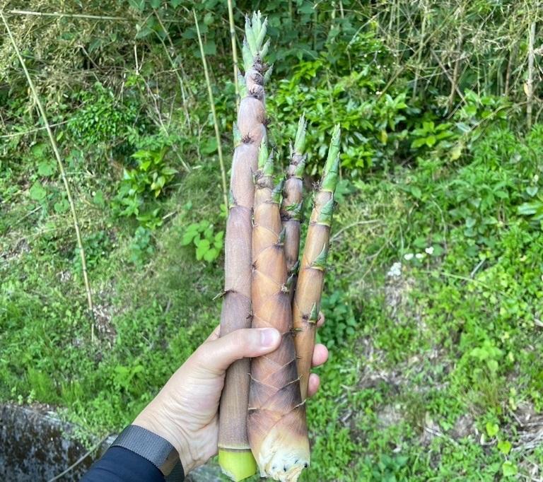 こちらは移動中に見つけた破竹(はちく)。破竹の収穫は本来の体験メニューにはありませんでしたが、地域の方の粋なはからいで途中で車を止めて収穫させていただくことに。