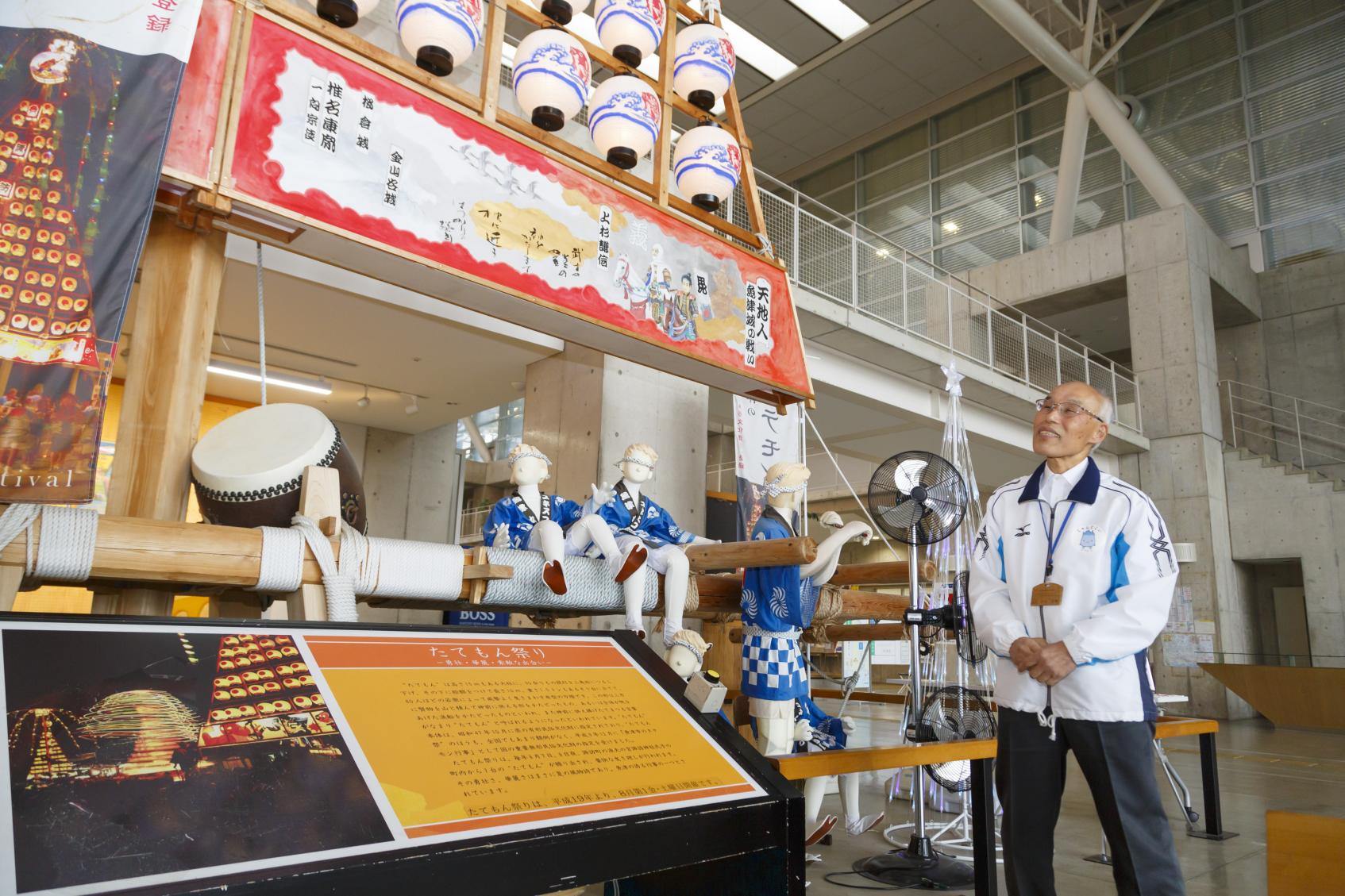 「昔は、もっと“たてもん”を曳き回す祭りは各地にあったのだけども、電線が邪魔をするようになって、高さを下げた曳山へと変化した所が多く、魚津では、浜辺でソリを曳いていたから、このスタイルが残ったんですよ」と伊東さん。