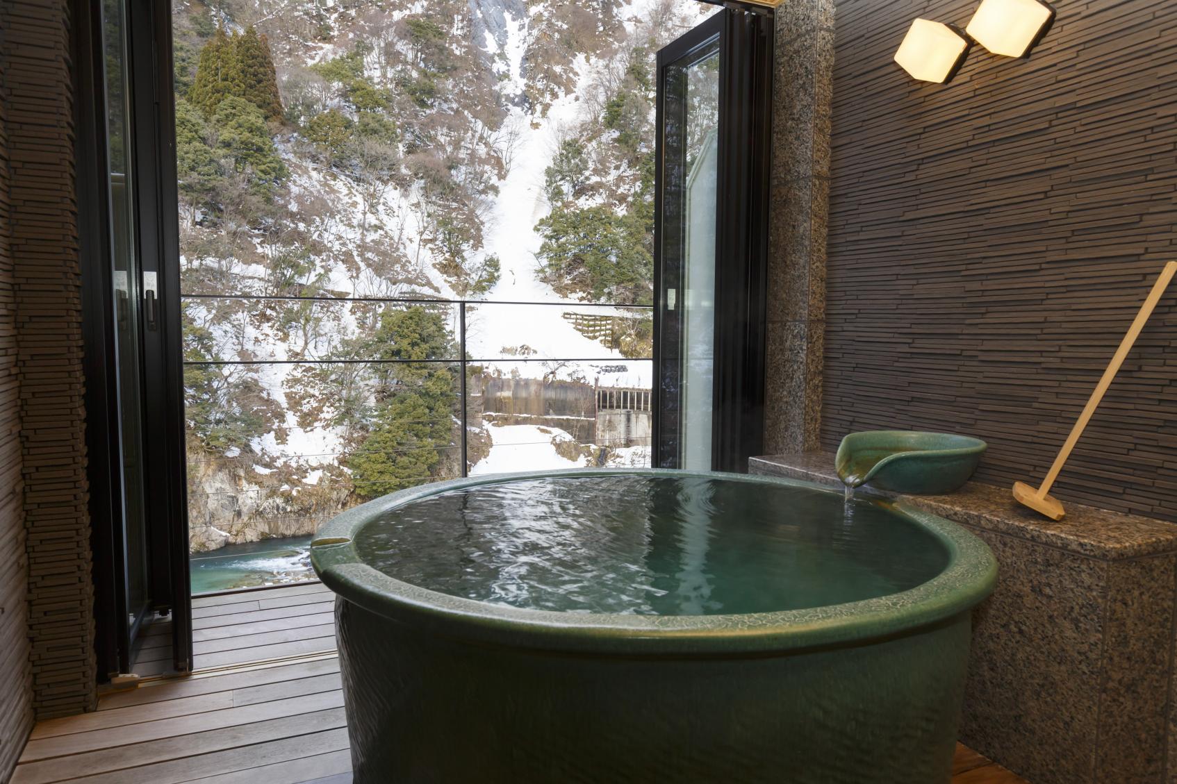 昭和12年創業の「延楽(えんらく)」は、昭和天皇皇后両陛下や、皇太子時代の上皇上皇后両陛下がご宿泊された由緒ある旅館です。お湯は透明度が高く、肌に優しい弱アルカリ単純泉。雄大な黒部峡谷の絶景を、一枚の絵画のように望む樹齢四百年の総ひのき露天風呂や、客室付きの個性豊かな露天風呂に漬かれば、心まで洗われるようです。