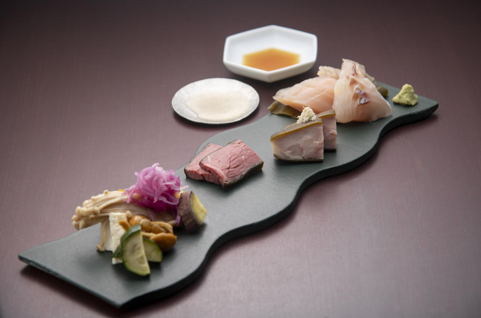 しょうゆとともに提供される調味料は「煎り酒(いりざけ)」。梅干し、酒、かつお節、昆布などを煮詰めた調味料で、昆布締めならではの素材そのものの豊かな風味を味わうことができます。