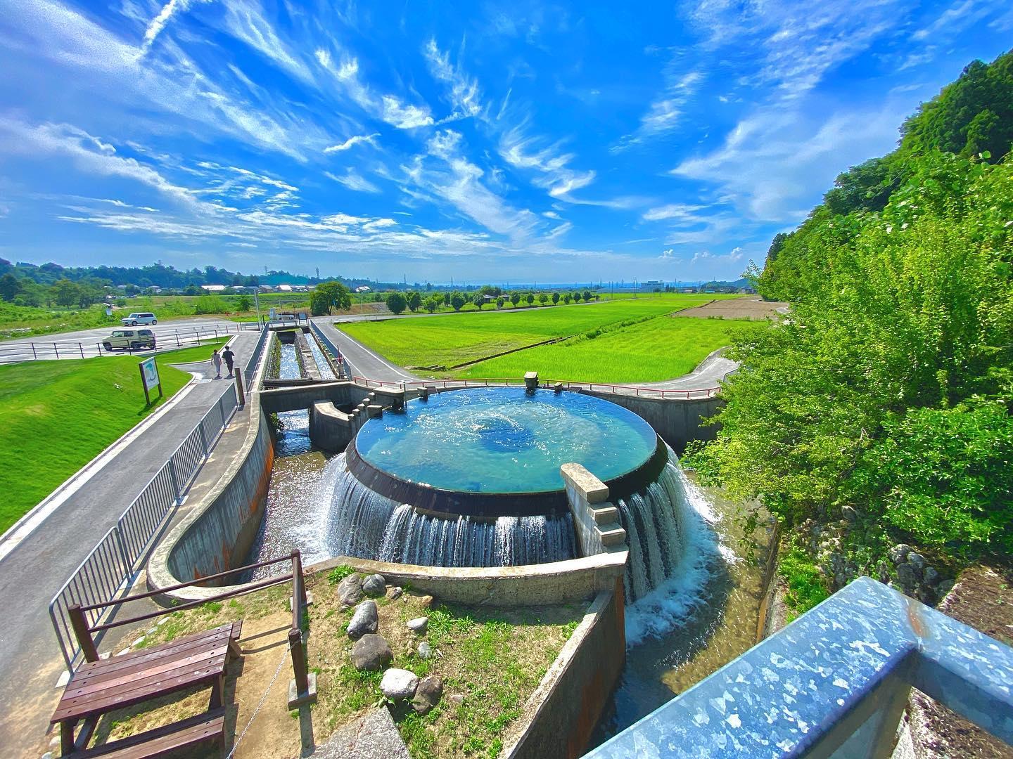 東山地区の3つの用水に公平に水を分配するための円筒分水槽ですが、近年、その美しさから観光スポット、パワースポットとして訪れる人の姿も。円筒から溢れる水の落差がこれだけあるものは珍しく、“日本一美しい”とも評されている今注目のスポットです。