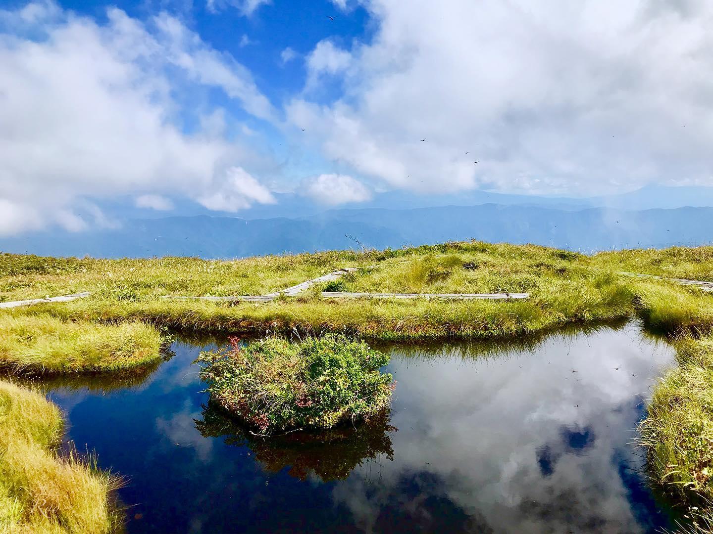 岐阜県との県境にあり、標高1,596mでありながら高山植物の宝庫でもあります。頂上では間近に見える金剛堂山以外に視界をさえぎる山がないので、周囲はもちろん富山湾、能登半島まで見渡せる大パノラマを楽しんで。夏は可憐なニッコウキスゲも見頃に。