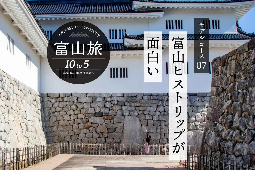 富山駅から徒歩で「富山城址公園」を訪れ、路面電車に乗って北前船交易で栄えた港町・岩瀬へ。寄り道を楽しみながら、ゴールの宇奈月温泉を目指しましょう。