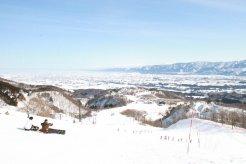 天気のいい日には砺波平野を一望でき、富山湾まで見渡すことができます。スノーボードも全面滑走可能です。スキーヤーもボーダーも一緒に楽しめます。 -