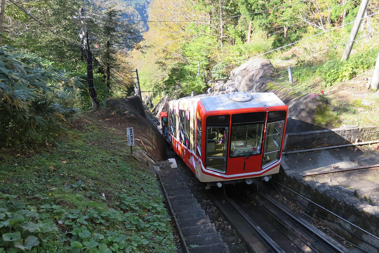 立山駅から美女平の1.3kmの区間、標高差約500mを7分で登ります。