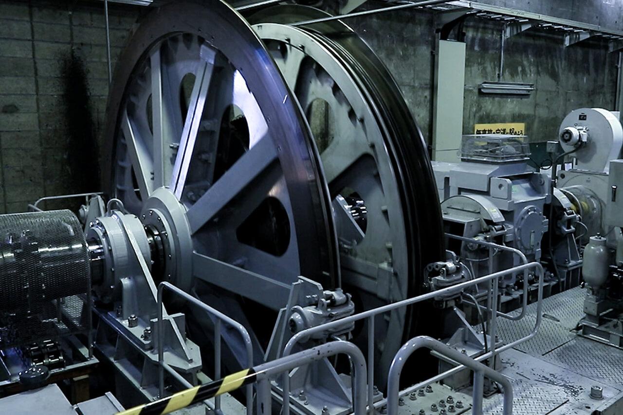 ロープウェイには、3種類のロープが使われているんですが、ここでは、客車を動かすためのロープをモーターで巻き上げています。