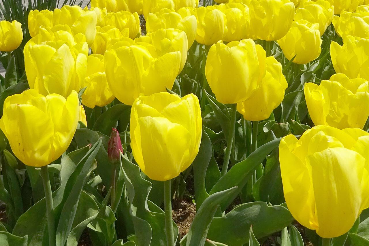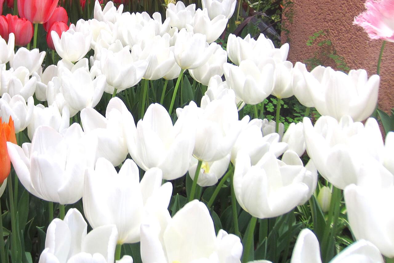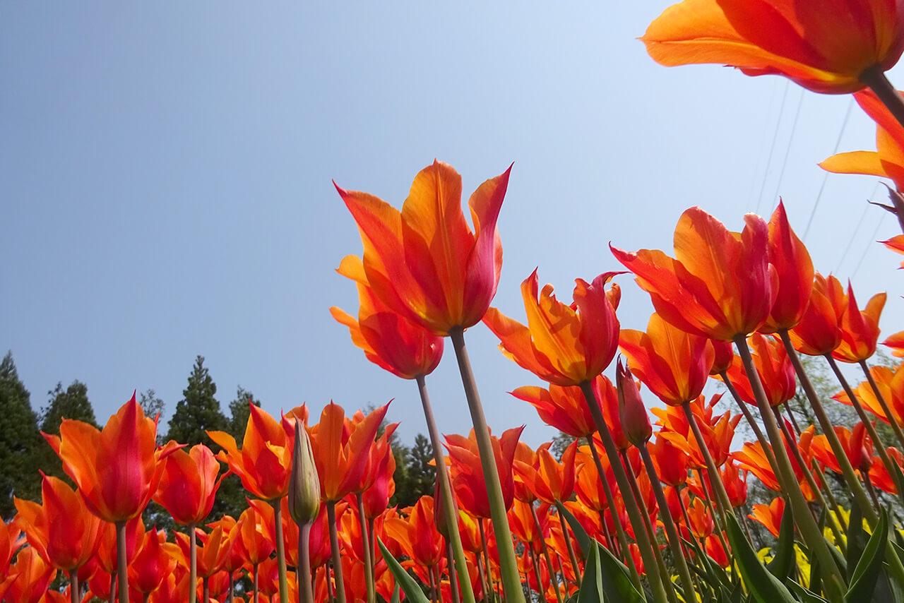 春、あたたかな日差しを浴びて咲き誇るチューリップ。
