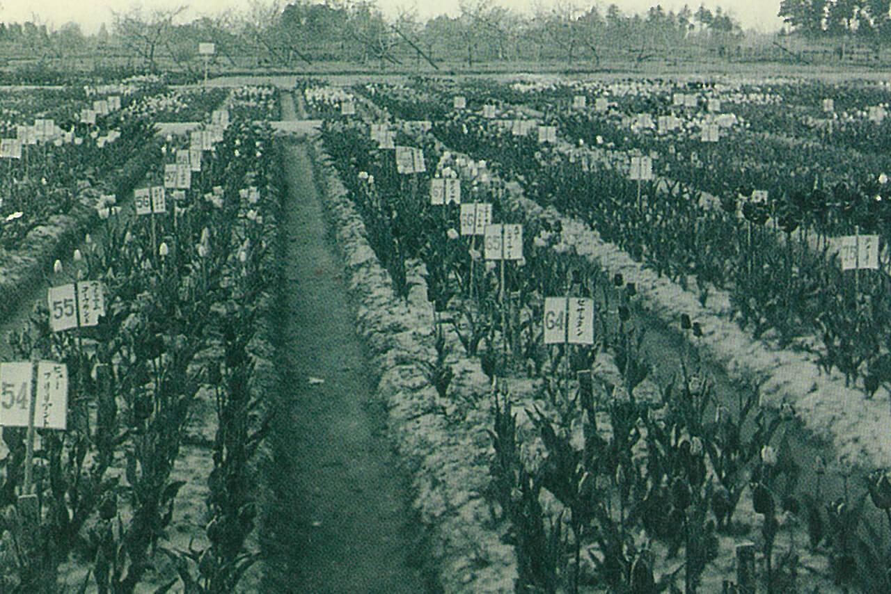 昭和26(1951)年、日本がまだGHQ(連合軍司令部)の支配下にあった頃、富山県の園芸試験場が統合され、県外へ移転されるかもしれないとの話を聞き、その対策として考えたのが、チューリップの観賞会を開催することでした。