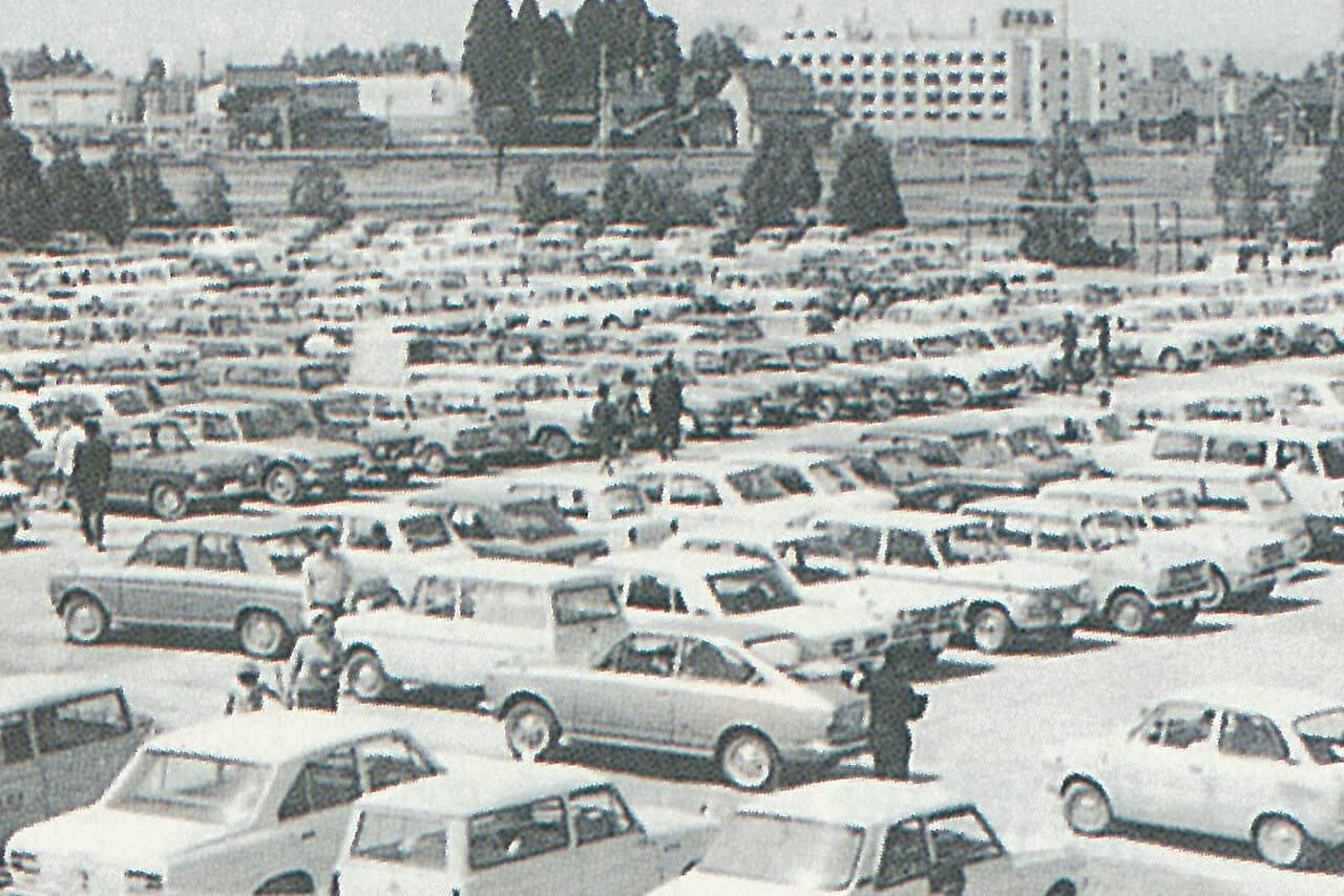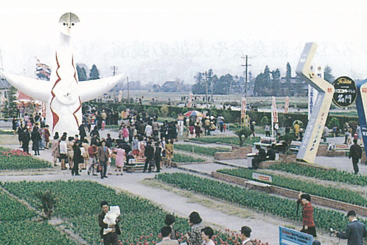 チューリップフェアの記念誌には、「付近の無料駐車場には、東京や名古屋、大阪などから観光バスや自家用車が押し寄せた」とあります。