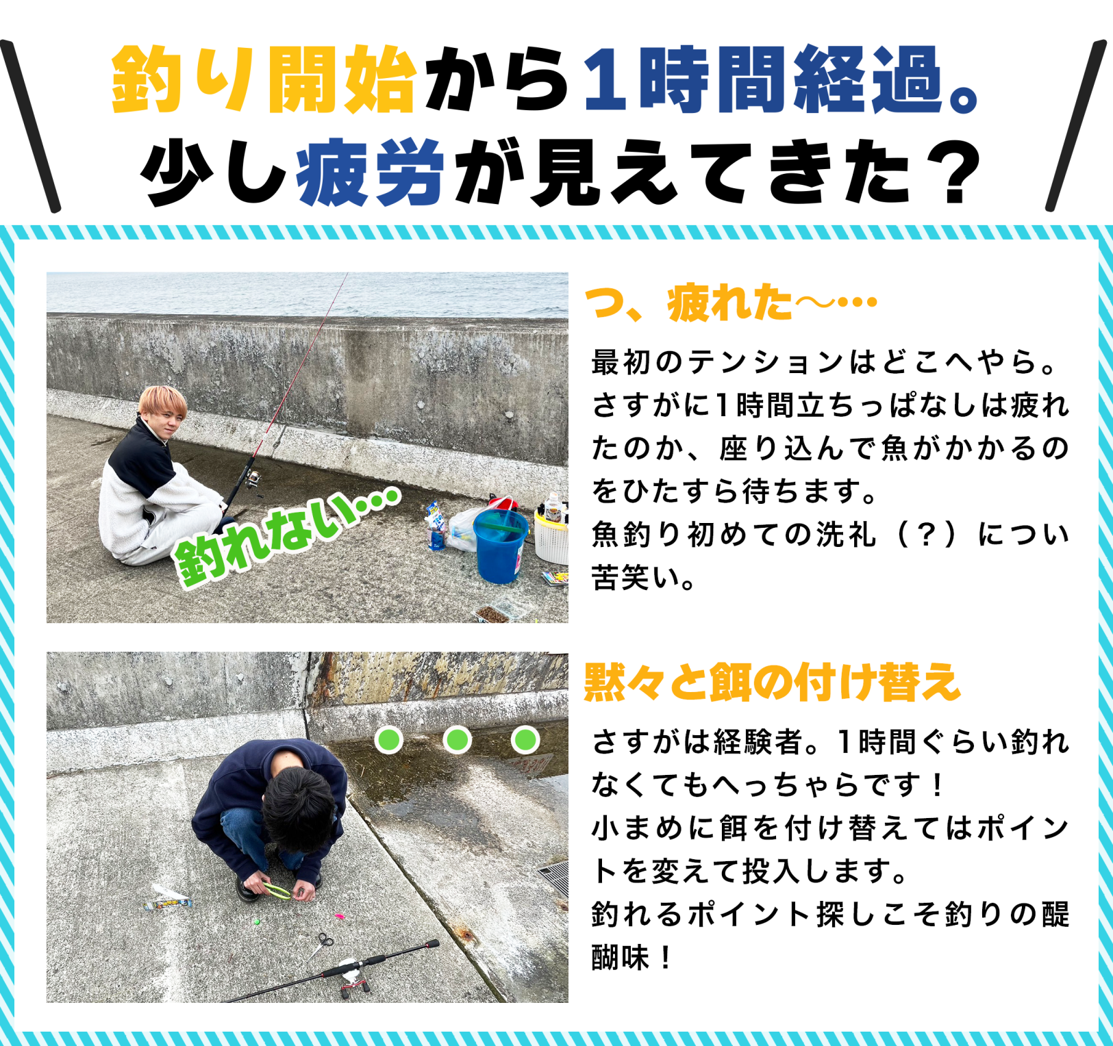 今日はまだ釣れてないよ。釣りで一番大切なのは根気だからね、このぐらいいつものことだよ。