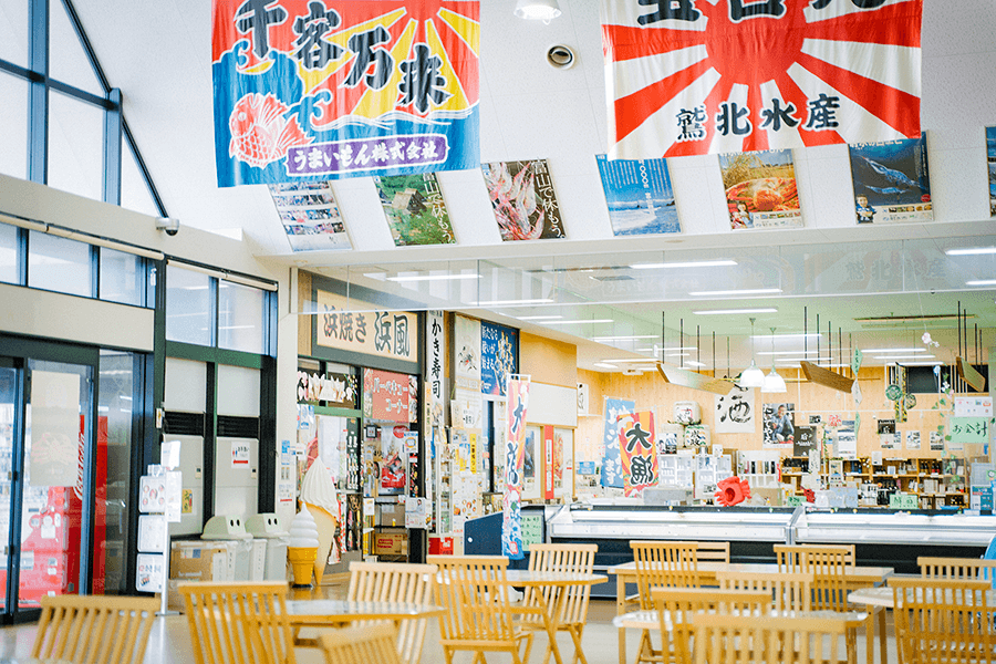 ベニズワイガニをいただくなら、新湊漁港すぐそばの「新湊きっときと市場」へ。漁港直送のベニズワイガニやシロエビなど、シーズンごとに新湊ならではの新鮮な魚介類が購入でき、食堂ではお刺身や丼ぶりをいただくこともできます。