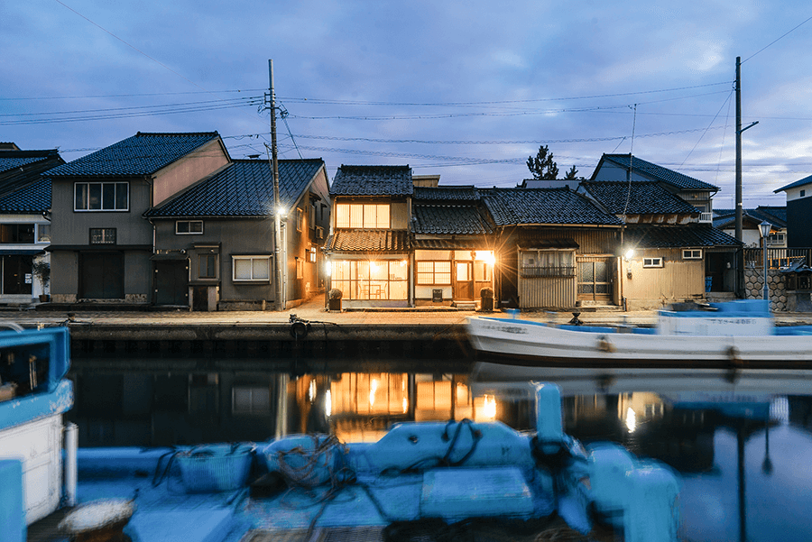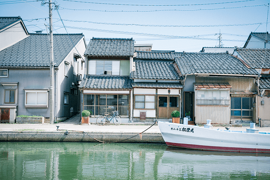 海運と漁業で栄えてきた町には、富山新港から海岸線に並行して、東西を約3420メートルを流れる「内川」があります。内川は古くから舟運河として人々の生活に深く溶け込んでいて、その水辺と生活が近い風景から ”日本のベニス” とも呼ばれます。