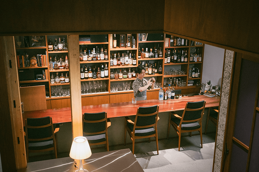 築70年の民家をリノベーションした店内からは、そんな夜の内川を眺められます。カウンター、テーブル、ソファー、中2階、2階席と、それぞれ表情の違う空間が用意されており、一緒に訪れる人や気分にあわせて居心地のいい場所を選べます。
