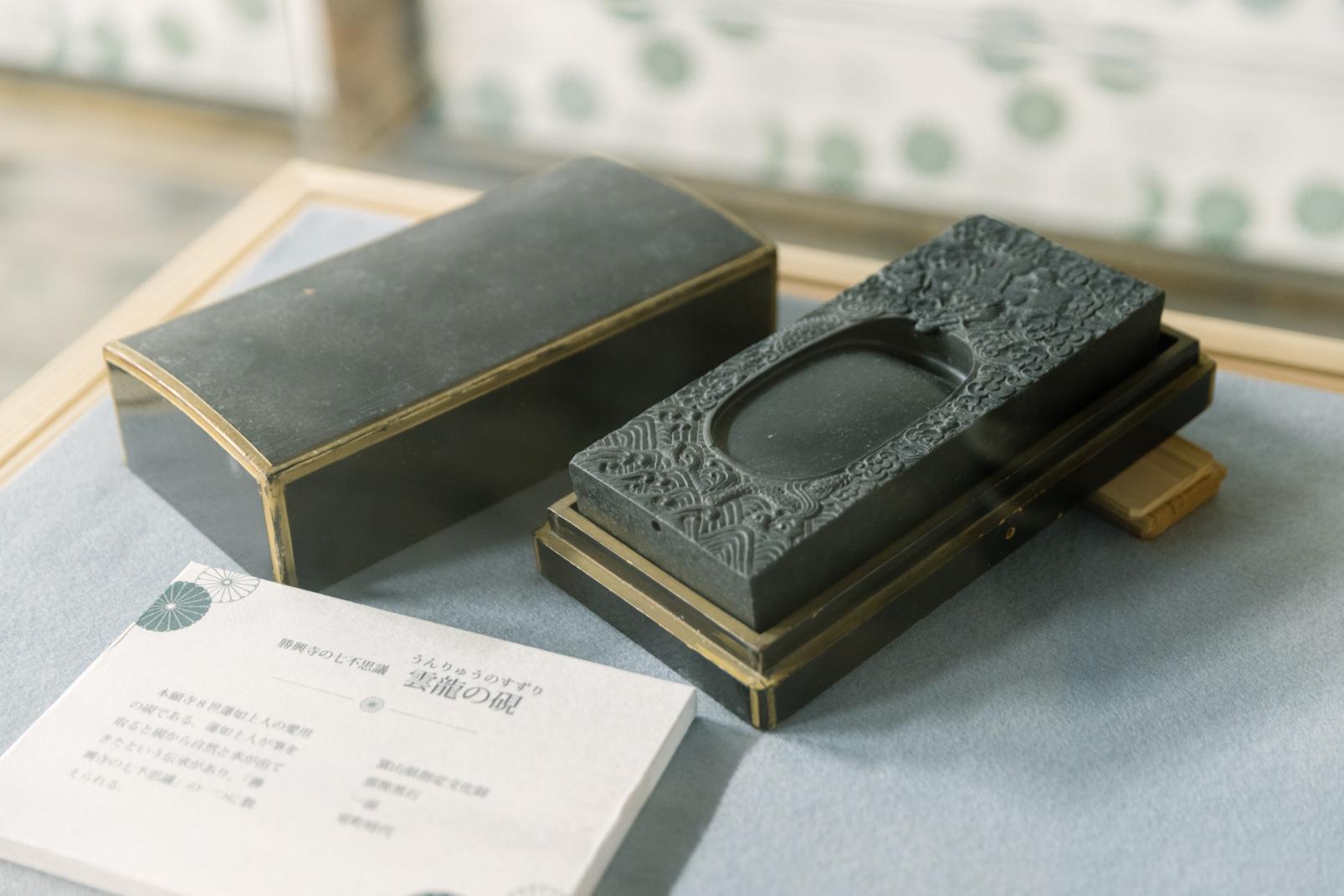 門徒が考えたと言われる「七不思議」をめぐるのも『勝興寺』の楽しみの一つ。境内にある大銀杏は、木から子供が落ちたり実を奪い合う喧嘩が起きたりしたことから、あるとき住職がお経をあげると翌年から実をつけなくなったそうです。また雲龍の硯は、蓮如上人が筆をとると硯から水が出てきたという逸話が残されています。