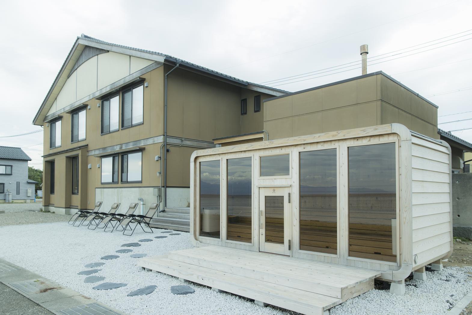 目の前に富山湾が広がる『民宿 あおまさ』は、ひみ里山杉で造られたサウナと、氷見の魚介を使った料理が主役です。