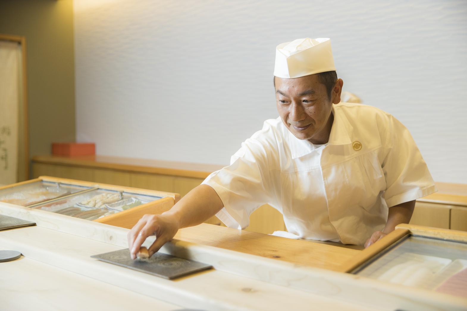 息の合った手捌きで、氷見漁港で厳選したネタでこだわりの寿司を提供しています。鮮度のよさをいかす魚もあれば、昆布締めや1〜2日間寝かせる魚もあるなど、長年培ってきた技を楽しむことができます。