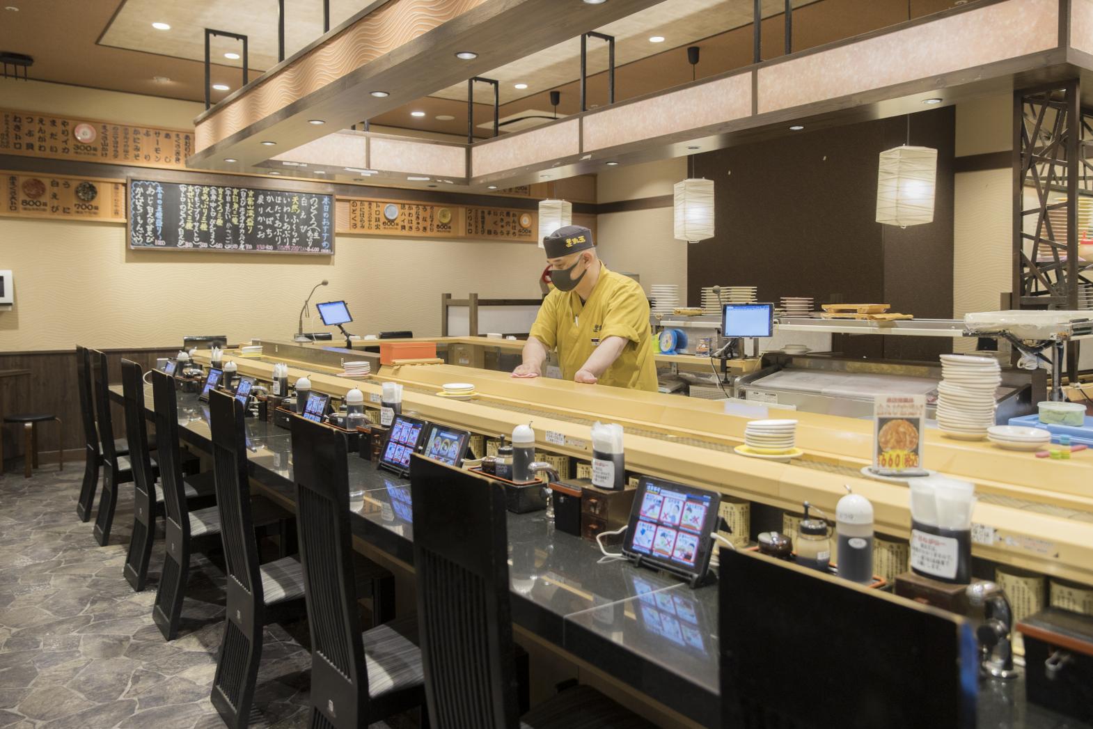 北陸新幹線JR富山駅に直結する「とやマルシェ」内という好立地に店を構える回転寿司店『すし玉』。連日開店前から行列ができる人気店です。