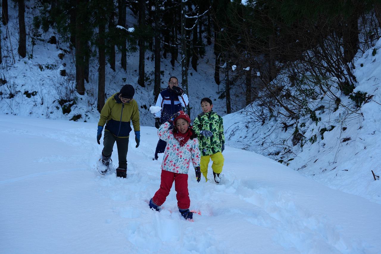 みんなでかんじきを履いて、森林の中を歩きました。子どもたちは遊べると思ったのか、大はしゃぎ!初めてかんじきを履いたとは思えないほど、自由に走り回っていました。次は、「雪だるまを作ろう!いや、雪合戦をしよう!かまくらも作ってみたい!」と張り切る子供たち。
