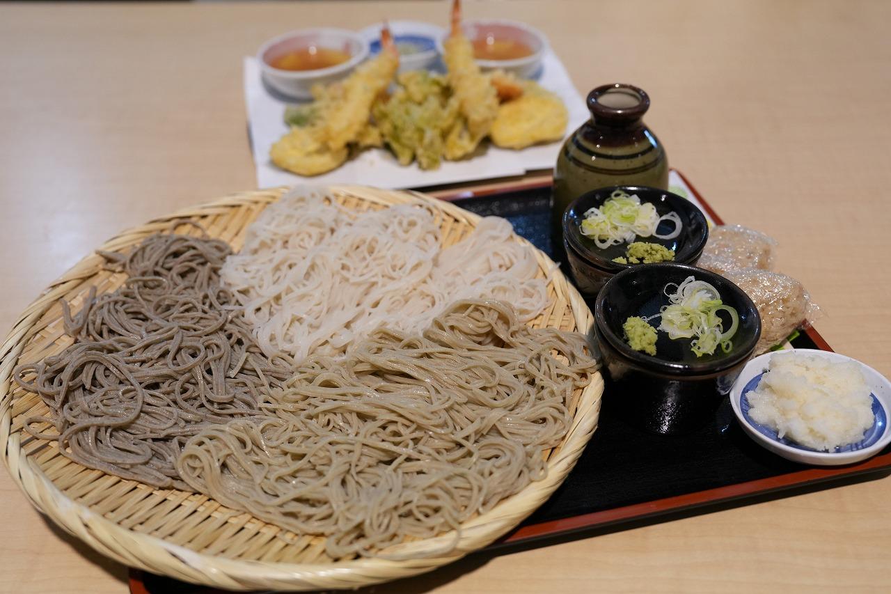「山田の案山子」の店内にあるおそば屋さん「おんもり庵」では、山田地区産のそば粉を100%使用し、店主が丁寧に手打ちしたそばを提供しています。そば本来の風味が豊かで、のど越しも抜群の一杯を味わえます。一番人気は、「3種盛り(更科・九割・十割)」のざるそば。異なる風味や食感を楽しめる贅沢な一皿です。さらに、天ぷらと一緒に味わうと、その相性の良さに思わず笑顔になってしまう美味しさでした。「3種盛り」以外にも、「月見そば」や「天ぷらそば」もあります。気候に合わせて、温かい品や冷たい品など選んで食べるのもいいですね!