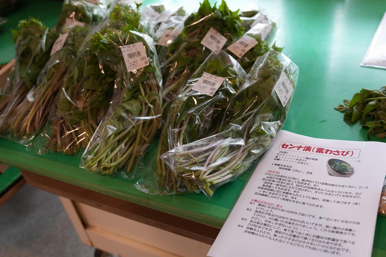 たくさんのお客様で賑わっていました。お店には、山菜を知り尽くしたとっても優しい店員さんがいらっしゃいます。「どうやって食べたら美味しいの?」「天ぷら以外でも食べ方ありますか?」といったお客さまの問いに、一つひとつ丁寧に答えてくださいました。