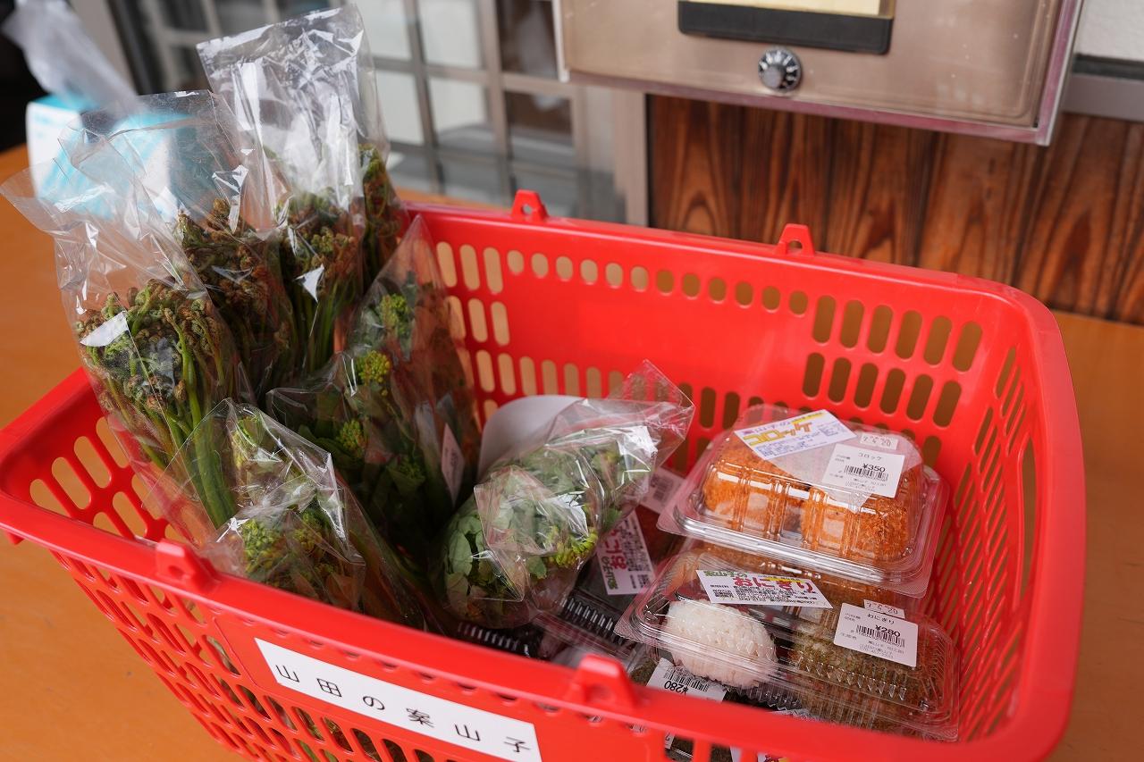4月中旬からゴールデンウィークにかけて、山菜の最盛期を迎えます!山田地区の特産である山菜が、店内いっぱいにずらりと並び、この季節ならではの春の味覚を求めて、皆さんかごいっぱいにお買い物をされていました。私もここ「山田の案山子」で、「コシアブラ、タラの芽、こごみ」を購入しました。天ぷらにしたり、肉巻きや胡麻和えにしたりと、春の味を思う存分楽しみました。旬の食材はとても美味しかったです。