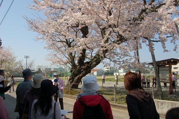 旧三日市小学校の百年桜集合→三日市の商店街巡り→北陸上街道・下街道分岐地→山内家仁王門→倉田邸の大庭園→バタバタ茶体験