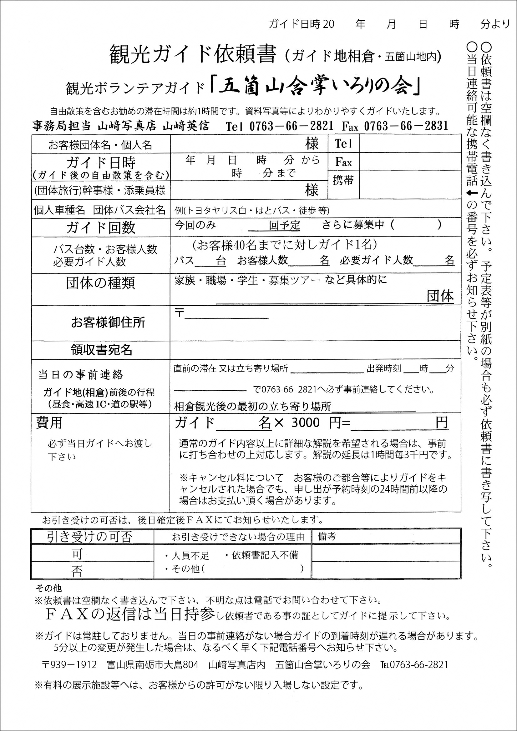 | 電話番号(備考) | 0763-66-2821(山崎写真店内いろりの会) |