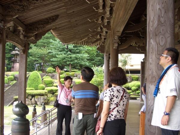 歴史に強い人・楽しい人・木に詳しい人等、ガイドはいろんな人がいます。方言でしゃべるようにしていますので、楽しんでいただけるかと思います。コースは瑞泉寺と石畳の八日町通りの1時間半コース・瑞泉寺から木彫りの里への2時間コース・閑乗寺高原の散居村展望の3時間コースと、ご相談に応じます。また、木彫り彫刻師と一緒にご案内するガイドもあります。